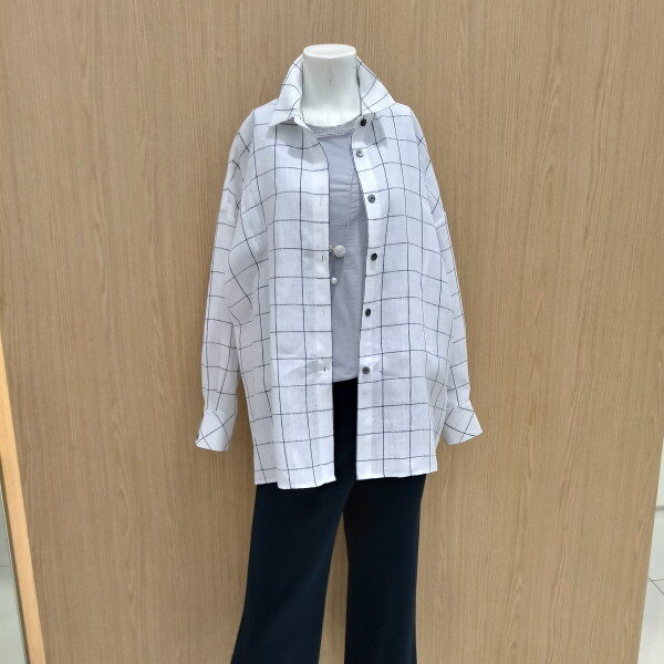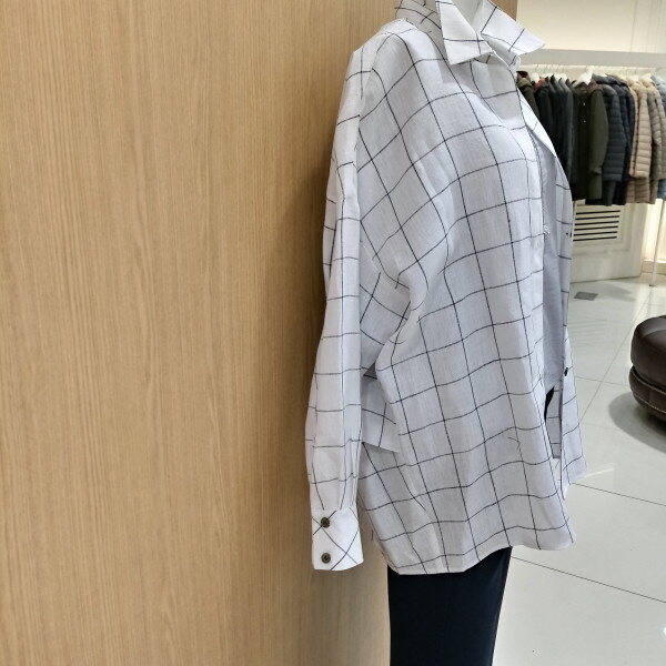 안지크 린넨100%블라우스 디자인이 독특하게 옆라인에샤링이 들어가 캐쥬얼한 느낌을 주며 린넨소재라 고급스럽고 세련되어 보임