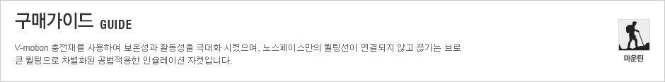 V-motion 충전재를 사용하여 보온성과 활동성을 극대화 시켰으며,