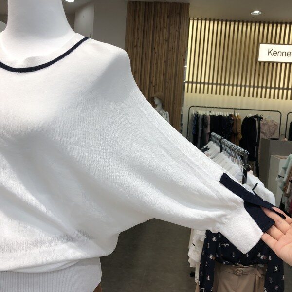 루즈핏라운드니트입니당~ 여성스러움을 강조한 7부 소매의 시원한 아이템입니당~!
