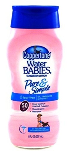 Tear free. Oil, fragrance & dye free. Broad spectrum UVA/UVB protection. Hypoallergenic. Waterproof. No. 1 pediatrician recommended brand. Coppertone WaterBabies Pure & Simple Sunscreen Lotion means: oil free, fragrance free and dye free. Ultra gentle zinc oxide formula. Ultra gentle zinc oxide formula.