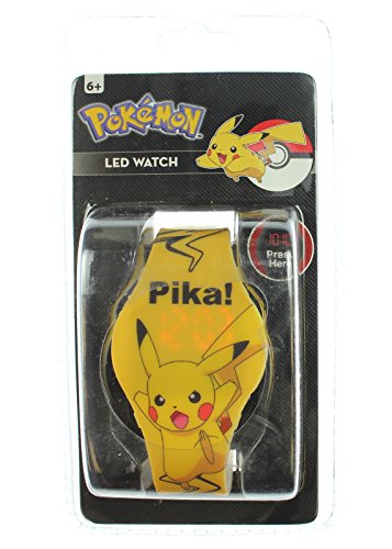 A wonderful LED digital watch has a large Pikachu printed on the band that any child will love. This is similar to the rubber bracelets that have swept over the country but also has a watch feature. Press face for LED Light up Display, The rubber band that features a buckle closure will fit your child's wrist comfortably, Easy to read Digital Light Up time. Perfect for any Pokemon Kids FanFeature