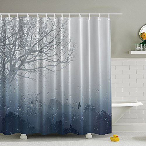 Messagee Rainy Scene Mystic Foggy Forest Romantic Window Water Drops View Lonely Tree Unique Bath Decor Shower Curtain Gray