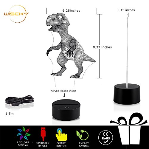 -. Title : 3D Night Lights for Children, Kids Night Lamp, Dinosaur Toys for Boys, 7 LED Colors Changing Lighting, Touch USB Charge Table Desk Bedroom Decoration, Cool Gifts Ideas Birthday Xmas for Baby Friends
