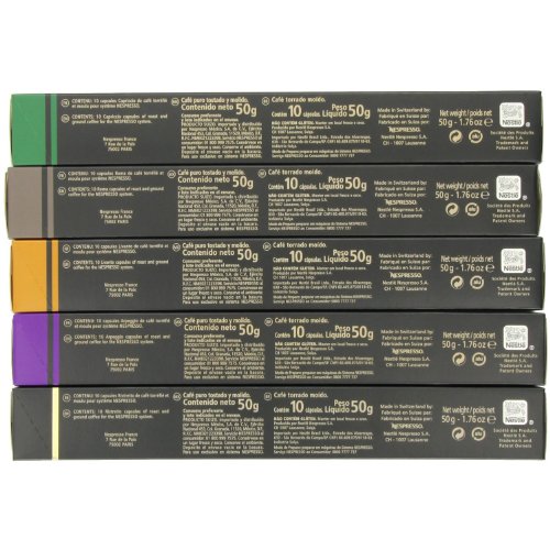 Our Nespresso Coffee Variety Pack ensures everyone their ultimate coffee experience by providing delicious fine and balanced coffees in an assortment of flavors. Let your senses be guided by flavors like Roma (light roast South and Central America Arabicas with sweet woody notes), Arpeggio (dark roast of South and Central America Arabicas with cocoa notes), Capriccio (South American Arabicas for an espresso with a rich aroma and strong note), Livanto (pure Arabica for a well-balanced espresso with a roasted caramelized note), and Ristretto (a blend of South American and East African Arabicas for a full-bodied intense espresso).Feature