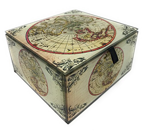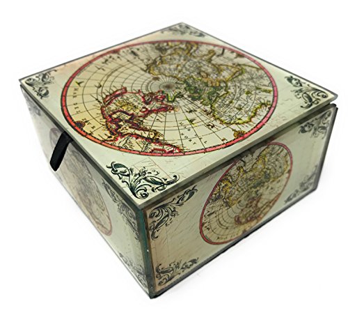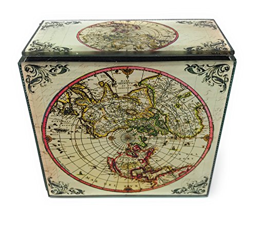 Vintage World Map Jewelry Box by Value Arts, 4 Inches X 3.75 Inches