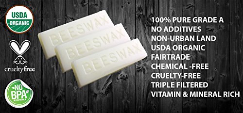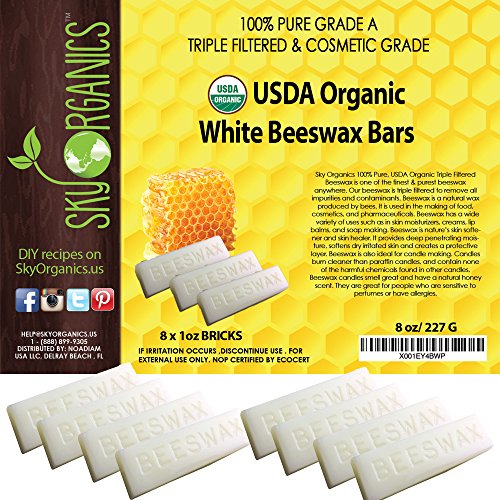 100% PURE USDA ORGANIC Certified Beeswax By Sky Organics - Premium Quality Cosmetic Grade Triple Filtered Grade A Bars-created under the strict organic guidelines set forth by the USDA - Created naturally by healthy honeybees in a NON-GMO, pesticide free environment