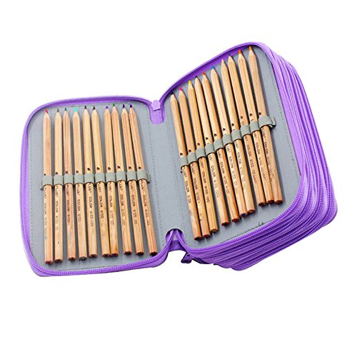Gunsamg Pencil/Gel Pen/Watercolor Pencil Case 72 Slots Portable Wrap Case (Purple)