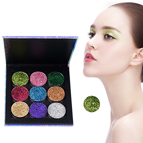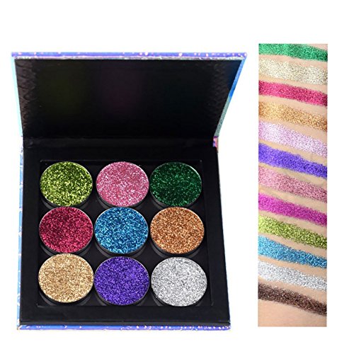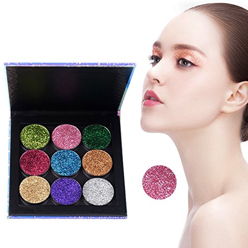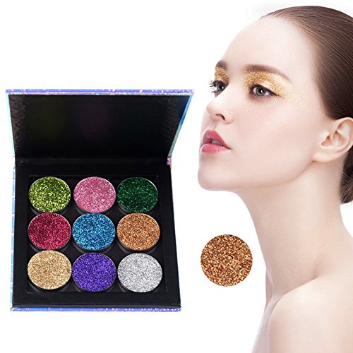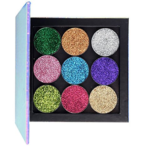 -. Feature : Type: Eyeshadow Powder Palette / Finishing: Satin, Glitter / Shimmer, Metallic, Bright, Radiant, Natural / Effect of eye shadow palette: glitter, shimmer, waterproof / This shade powder palette is very easy to mix with other products in use; It can be used for eyelids and blush. / Delicate and diamond texture of the pressed eyeshadow powder , do not leave skin lines; Can create any brilliant effect. Rich color, good ductility.