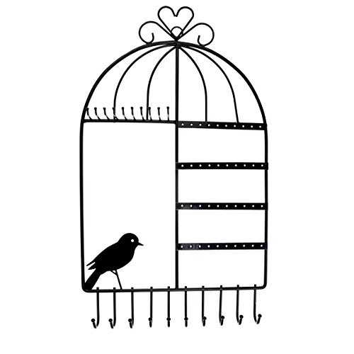 Rbenxia Birdcage Shape Wall Mount Jewelry Organizer Hanging Earring Holder Necklace Jewelry Display Stand Rack Black Inspired Birdcage Earring Holder Organizer Hanger Display Stand
