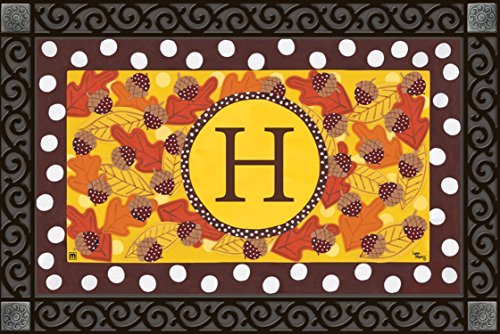 FALL FOLLIES MONOGRAM H DOORMAT INDOOR/OUTDOOR AUTUMN LETTER H BY MATMATES
