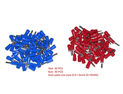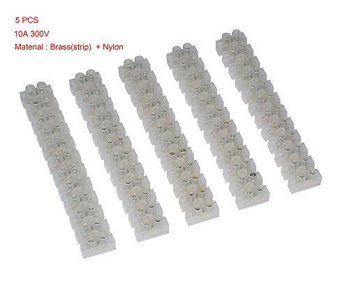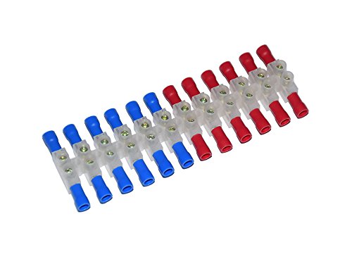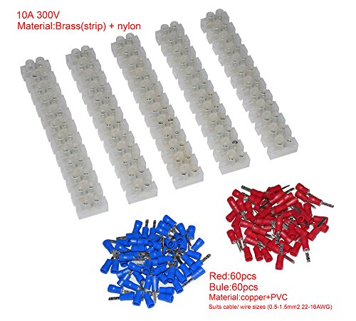 5Pcs 2 Rows 12P Wire Connector Screw Terminal Barrier Block 300V 10A + Insulated Electrical Wire Connector: 22-16 AWG Red/Blue 120 Pcs