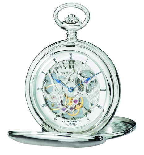 -. Title : Charles-Hubert, Paris 3904-W Premium Collection Stainless Steel Polished Finish Double Hunter Case Mechanical Pocket Watch