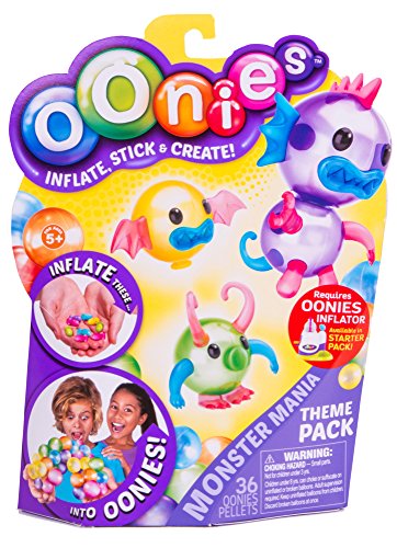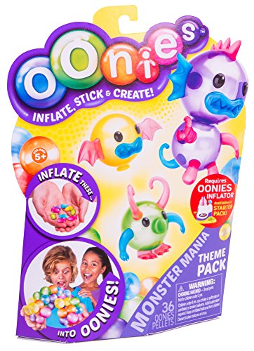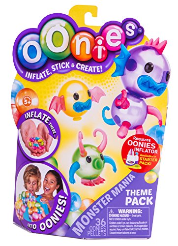 Oonies are the coolest way to create! Take an Oonies pallet, place it in the inflator and watch it magically grow into an Oonie! They stick to each other so you can make amazing creatures and designs! No glue . No water, no mess. Just air filled balls of amazing fun! MONSTER MANIA THEME PACK - Create the Weirdest Oonies Monsters you can think of. Heaps of accessories so you can inflate and create monsters galore!Feature