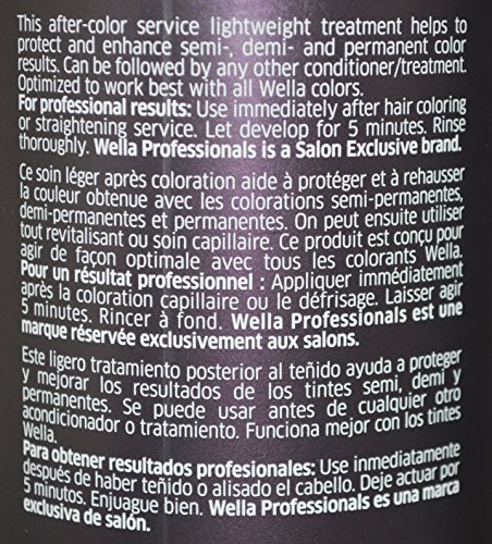 This after-color service lightweight treatment helps to protect and enhance semi-, demi- and permanent color results. Can be followed by any other conditioner/treatment. Optimized to work best with all Wella colors. For professional results: Use immediately after hair coloring or straightening service. Let develop for 5 minutes. Rinse thoroughly. This is a 2 pack!Feature