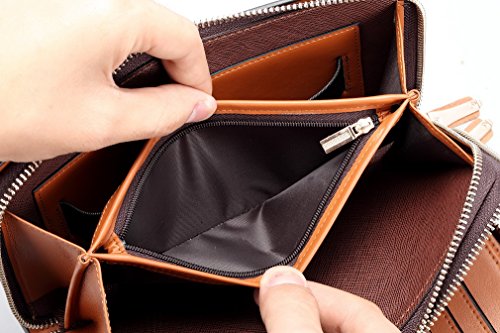 -. Feature : TIME-LIMITED DEAL: buy 1 gets 3% discount off, buy 2 gets 6% off ! ! Size:13*22*5cm / 5.12*8.66*1.97inch / Openings : zipper.Structure: 2 main section with zipper closure, back side a wristlet, a removable wrist strap. The first section come with a cash holder, a receipt holder, 11 card slots and a ID window. The second section was separated into 2 compartments. / Cards,cashes,Sun-glass,phone,keys,driver's license,tickets,photos,ONE bags takes ALL! your life could be so simple and convenient with this leather wristbands bag. / We use only the most great leather and alloy zipper as material.You have life warranty, DON'T FOCUS ON THE P.R.ICE, FOCUS ON THE QUALITY ! ! ! / Seller information: This mens clutches is made of 100% real leather, the surface is very smooth and design just suitable for all your casual needs, no less, no extra, you can take it no matter for business or causal life,You can't miss it.
