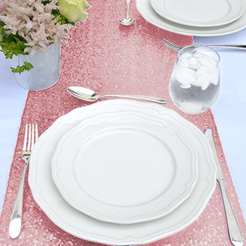 ShinyBeauty Pink Gold Sequin Fabric By The Yard, Sparkly Glilz Sequin Fabric For handmade of Sequin Backdrop, Tablecloth, Bow, Table Runner, Aisle Runner, Xmas Tree Decorations Etc. (Pink Gold)