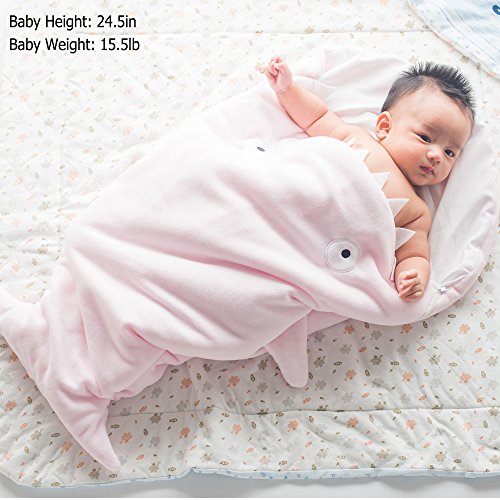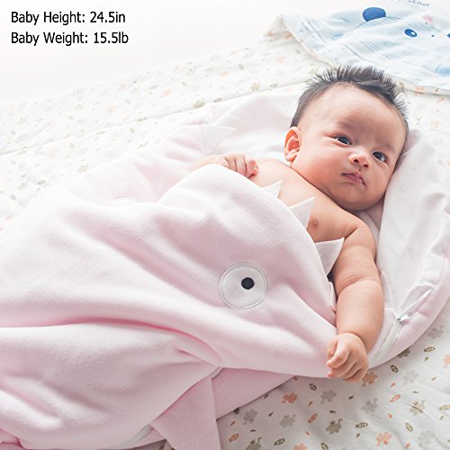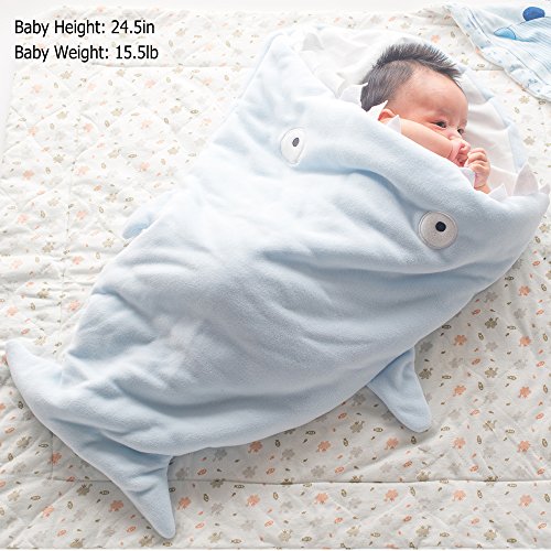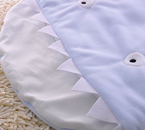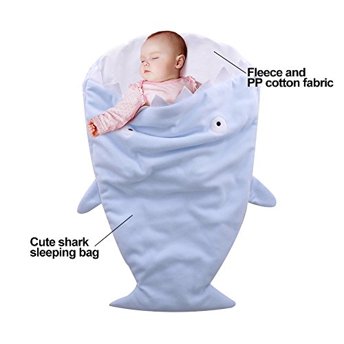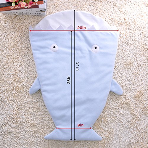 -. Feature : The baby is easy to kick off the quilt when sleeping which makes mother worried a lot. The sleeping bag can let the baby sleep soundly and keep warm and comfortable. / Cute shark sleeping bag, warm and comfortable, three layers of fabric, wind-proof and warm, let the baby sleep at ease; let the mother set her mind at rest. / Side zipper design, easy to wear on and off. / The swaddling clothes for the baby is a shelter from the wind which can also make it warm. A must have when going outside----You can put swaddle in the baby cart to avoid the situation where the outside weather bring harm to the baby. / Easy to put on and off; Allow your baby to kick freely.