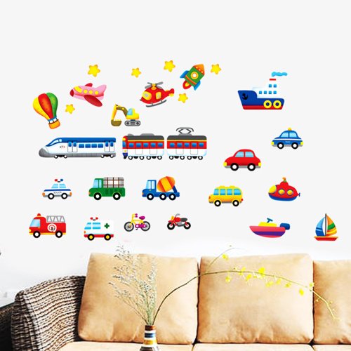 - Title : Yesurprise New PVC 3D Creative Colorful Car Train Boat Transport Kids living room backdrop Wall Stickers for baby kid's room decal Paper House Sofa Room Nursery - The Perfect Birthday, Christmas Gift