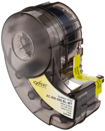 Brady XC-500-595-BL-WT IDXPERT & LABXPERT Labels B-595 Indoor/Outdoor Vinyl Film White on Blue, Printable Area: 19.000" W x 0.500" H 1 roll (30ft.)/Cartridge