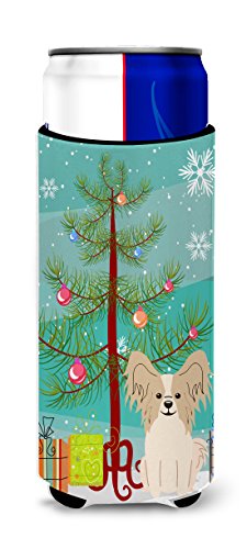 Caroline's Treasures BB4202MUK Merry Christmas Tree Papillon Sable White Michelob Ultra Hugger for Slim Cans, Multicolor