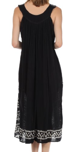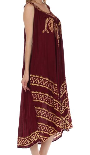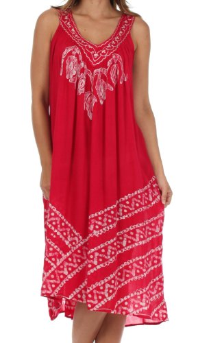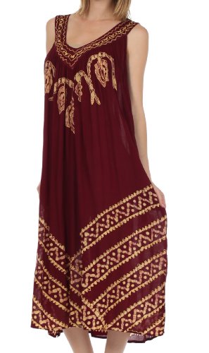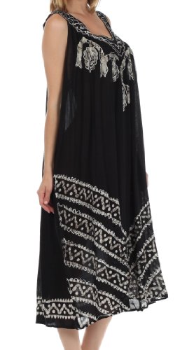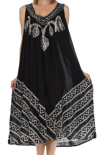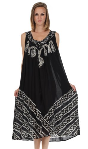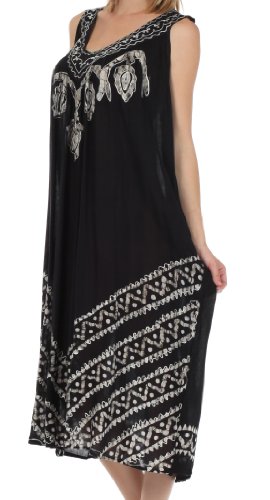 -. Binding : Apparel -. Brand : Sakkas -. Department : womens -. Feature : Sleeveless dress features soft lightweight cotton fabric, relaxed fit and embroidered batik design in beautiful colors. / Lightweight cotton fabric and relaxed fit makes this dress perfect for warm weather! / One Size ( US Size 0 - 1X ), Approximate Length = 43" ( Measured Center Back to Hem ) / Hand Wash in Cold Water. Hang Dry. | Material: 100% Cotton / Imported -. ProductGroup : Apparel -. ProductTypeName : DRESS -. Title : Sakkas Batik Stripe Sleeveless Caftan Dress