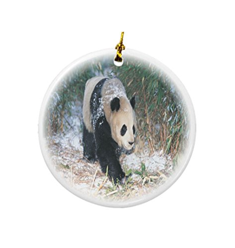 Rikki Knight Panda Bear in Snow Design Round Porcelain Two-Sided Christmas Ornaments