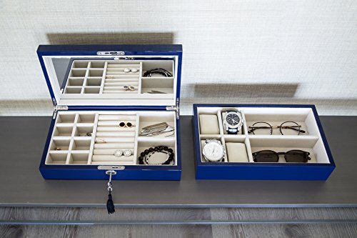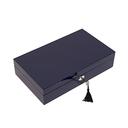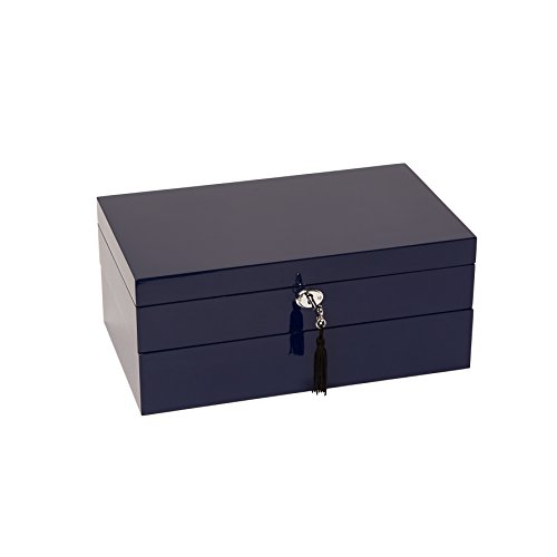 -. Binding : Kitchen -. Brand : Brouk and Co. -. Feature : The Brouk And Co Stacking 2- Piece Set Is Handcrafted In Superior High Gloss Lacquer Finish With An Ultra-Suede Soft Interior Lining. / The Set Includes 2 Levels That Can Be Stacked Or Used Independently / The Top Level Features A Beautiful Hinged Top With Interior Mirror And Compartments For Your Rings, Necklaces, And Earrings / The Lower Tray Features Four Ultra-Soft Pillows For Your Watches With 2 Larger Compartments For Your Eyewear Pieces Or Other Accessories! -. ProductGroup : Home -. ProductTypeName : HOME -. Title : Brouke & Co Women's Stackable Lacquer Jewelry Box and Tray 12”X7 1/8”X 5 1/8” Navy
