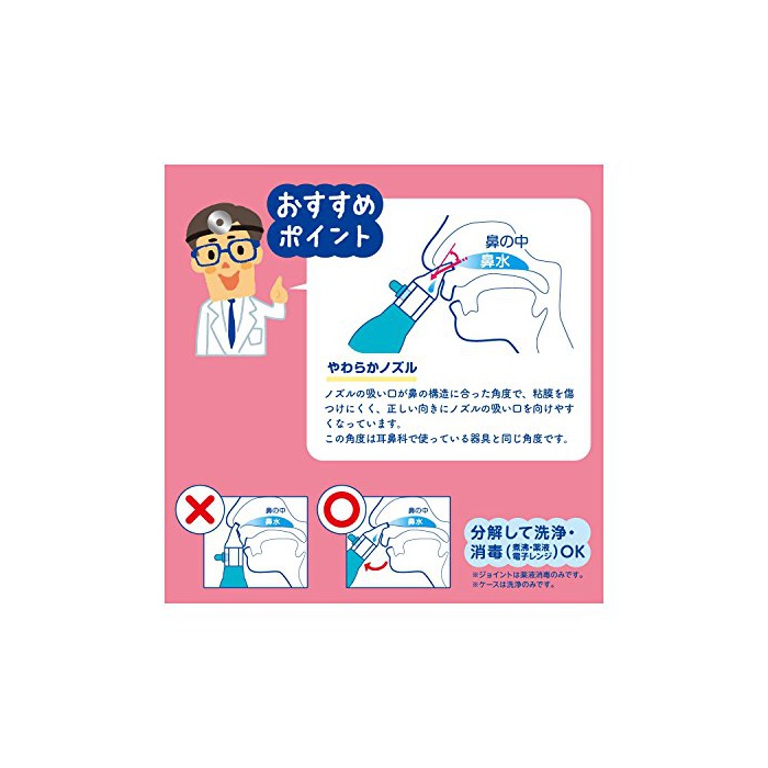 「펌프에 흡인」와「입에 흡인」의 2대로의 사용법 이 생기는 콧물 흡인기!