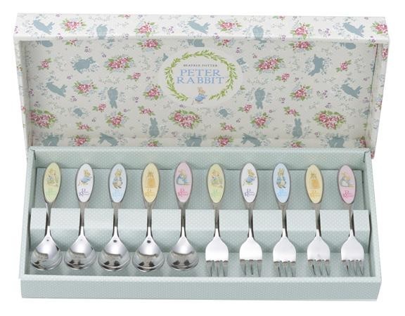 | ピーターラビットのキュートなスプーン&フォーク10本セット。 |