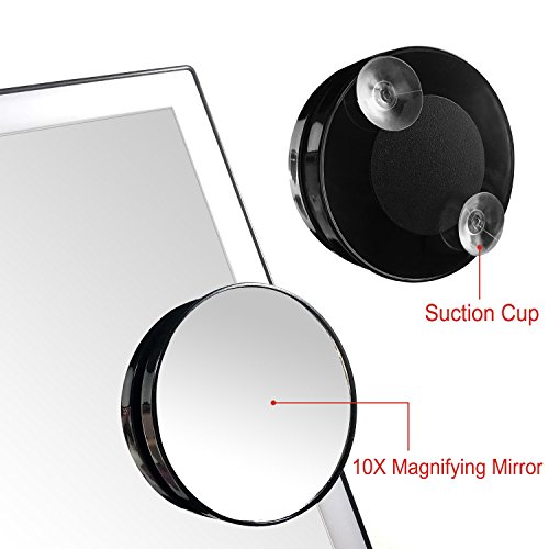 - 10X MAGNIFICATION: Comes with a 10X Magnification round mirror with suction cup, which can be attached to the mirror. It makes sure every detail of your hair and makeup perfectly in place, especially working well for eyeliner, eyebrows, etc. The 10X Magnification is some other sellers don't have