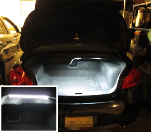 This page features one piece (1) super bright 18-SMD LED Strip used to replace the center trunk or cargo area lamp to light up the entire trunk area.