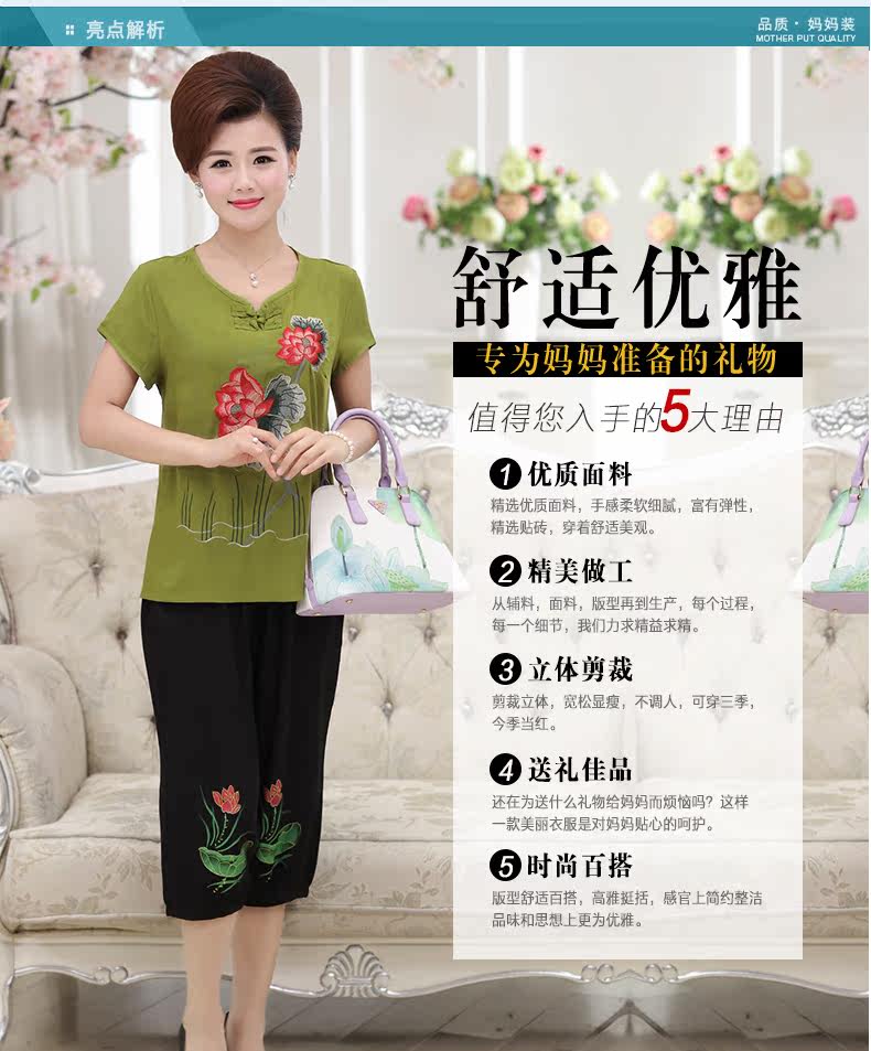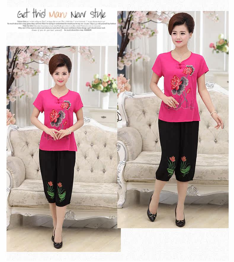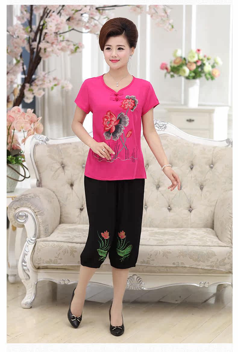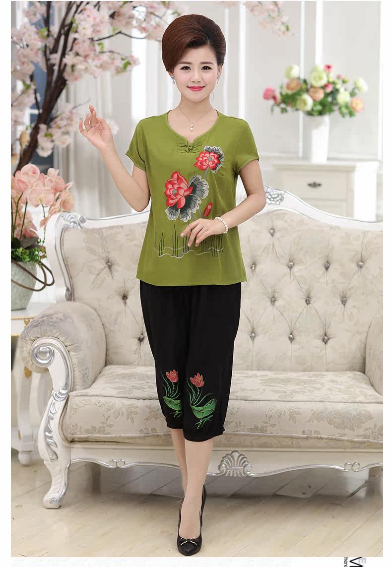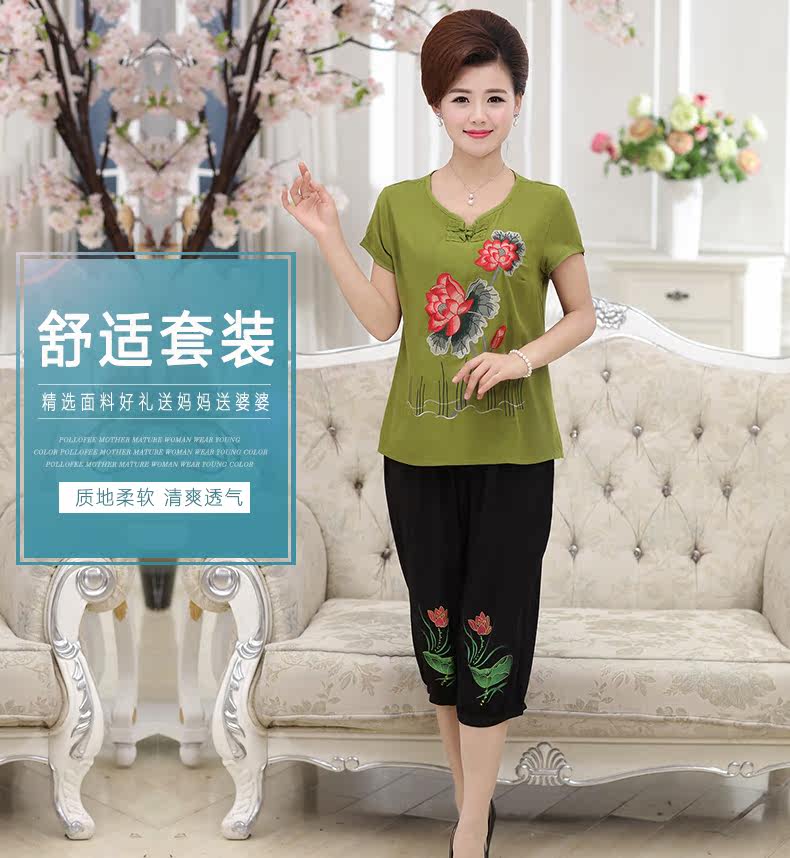 中老年女装夏装套装中年女装短袖40-50岁妈妈装夏季T恤裤子套装