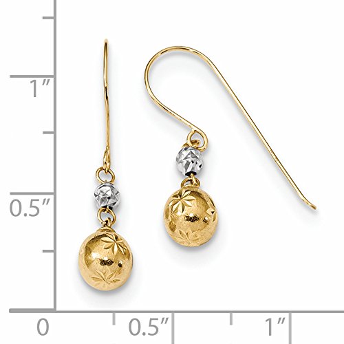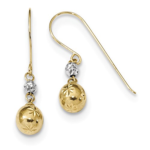 ICECARATS DESIGNER JEWELRY 14K TWO TONE YELLOW GOLD 6MM BALL DROP DANGLE CHANDELIER SHEPHERD HOOK EARRINGS