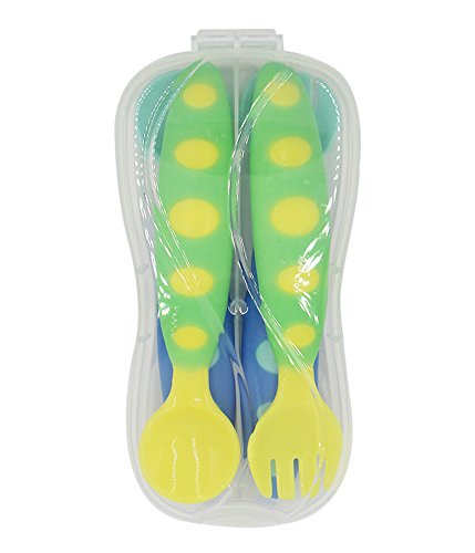 BYP Feeding Spork Spoon and Fork Set With Case Baby Tableware for Toddlers (Yellow Blue)