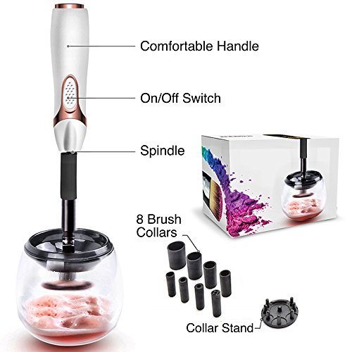 ❤ INCLUDES - Brush Spinner, Eight Rubber Collars, Spindle, Bowl, Bowl Splash Guard Ring, and Manual. Fits all makeup brushes.