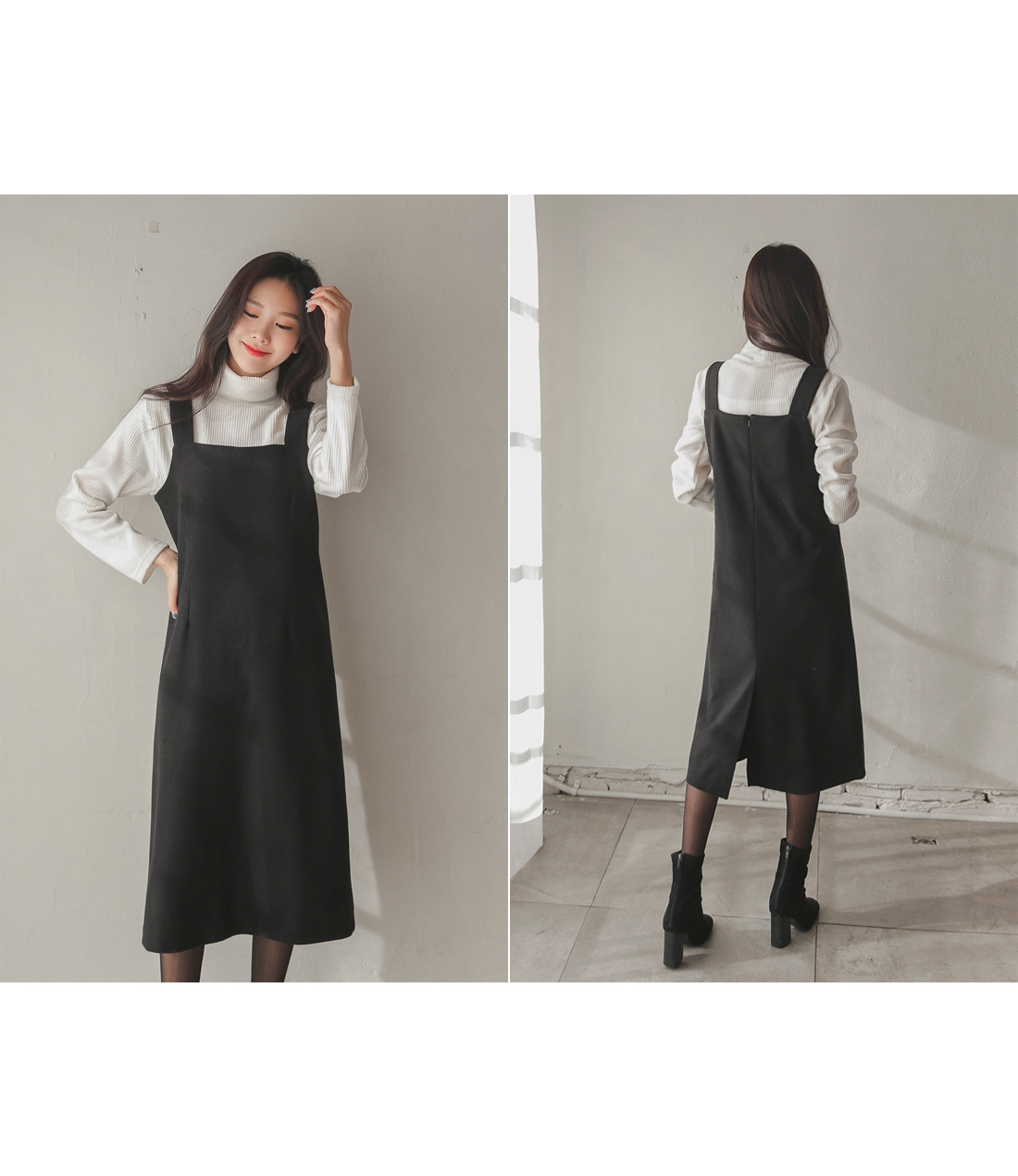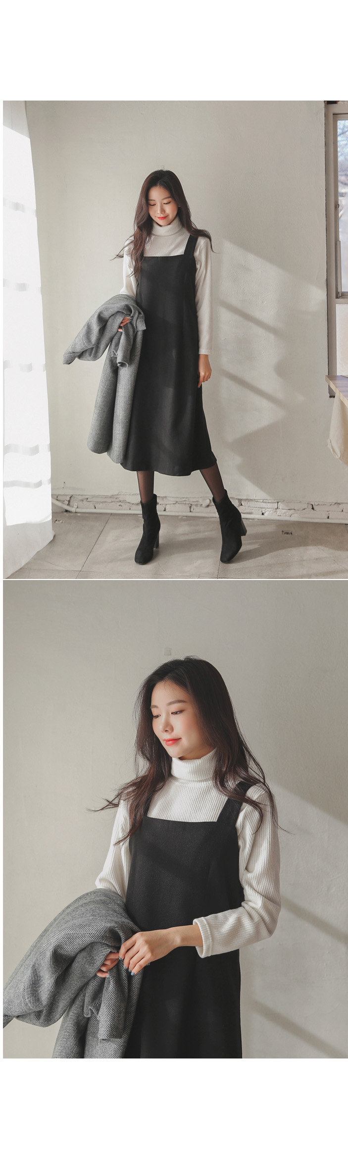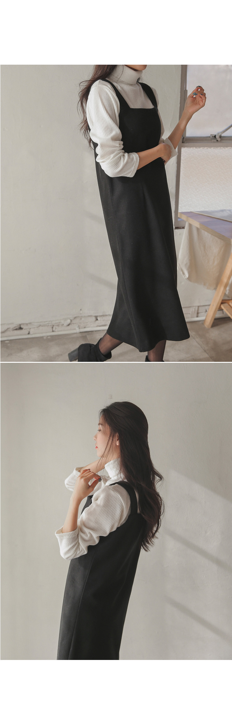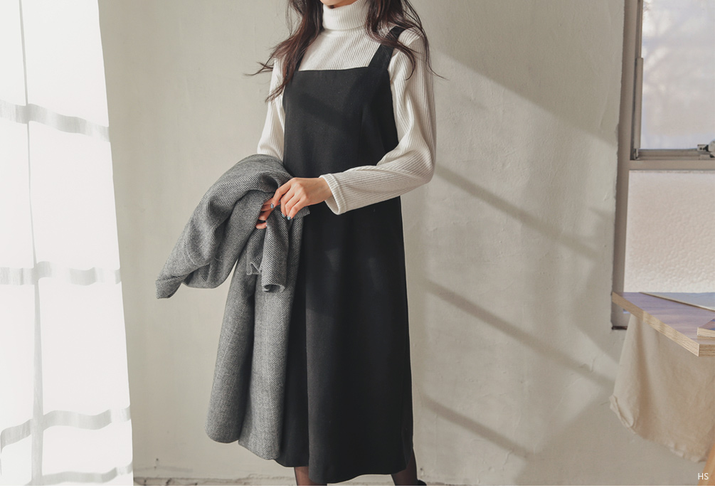여성스럽고 단정한 무드로 입기 좋은 울서스펜더원피스~!