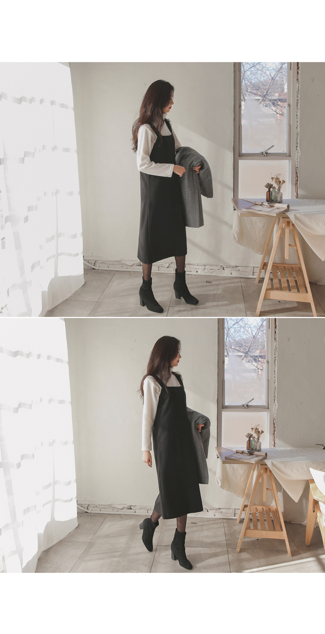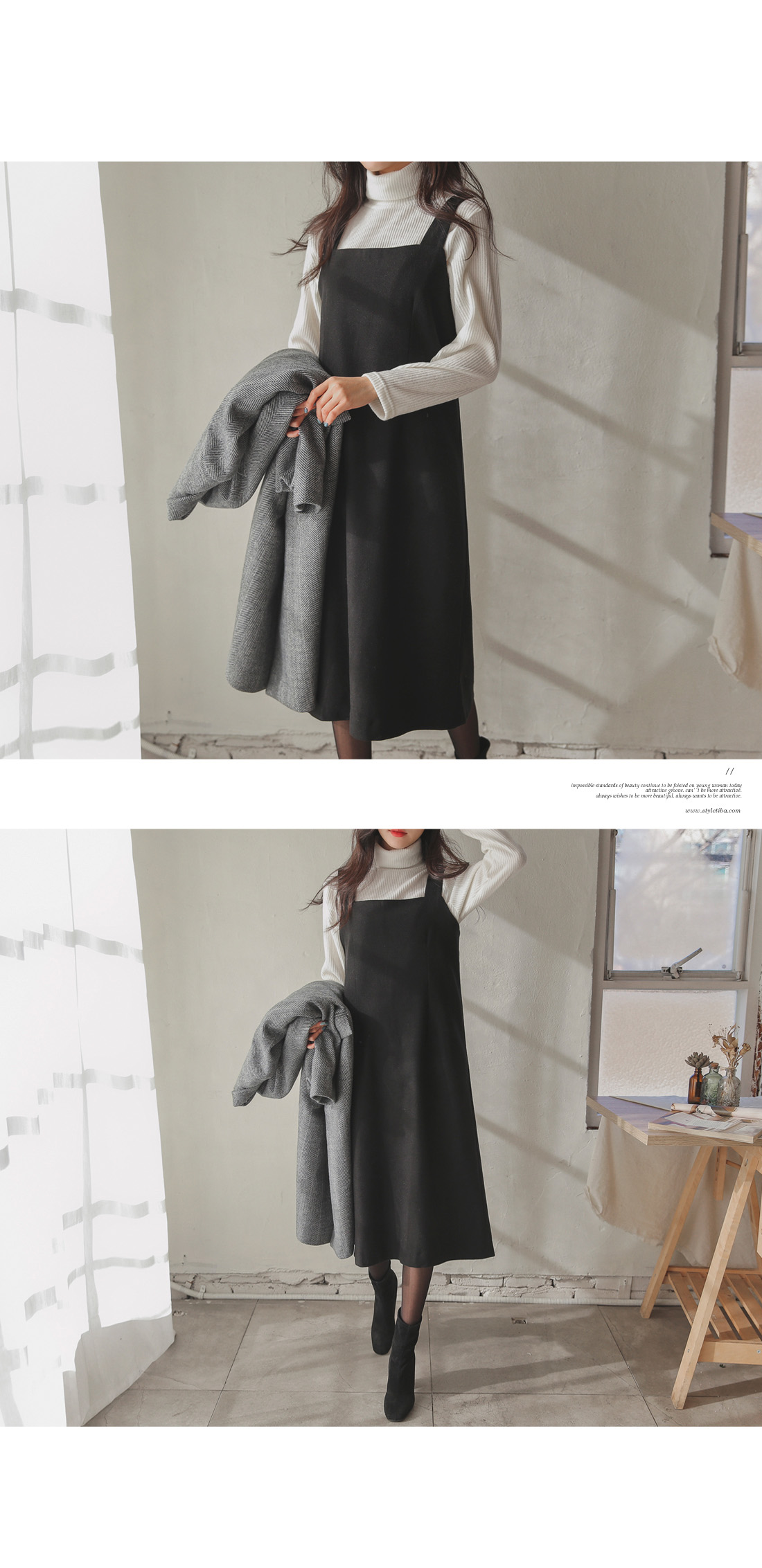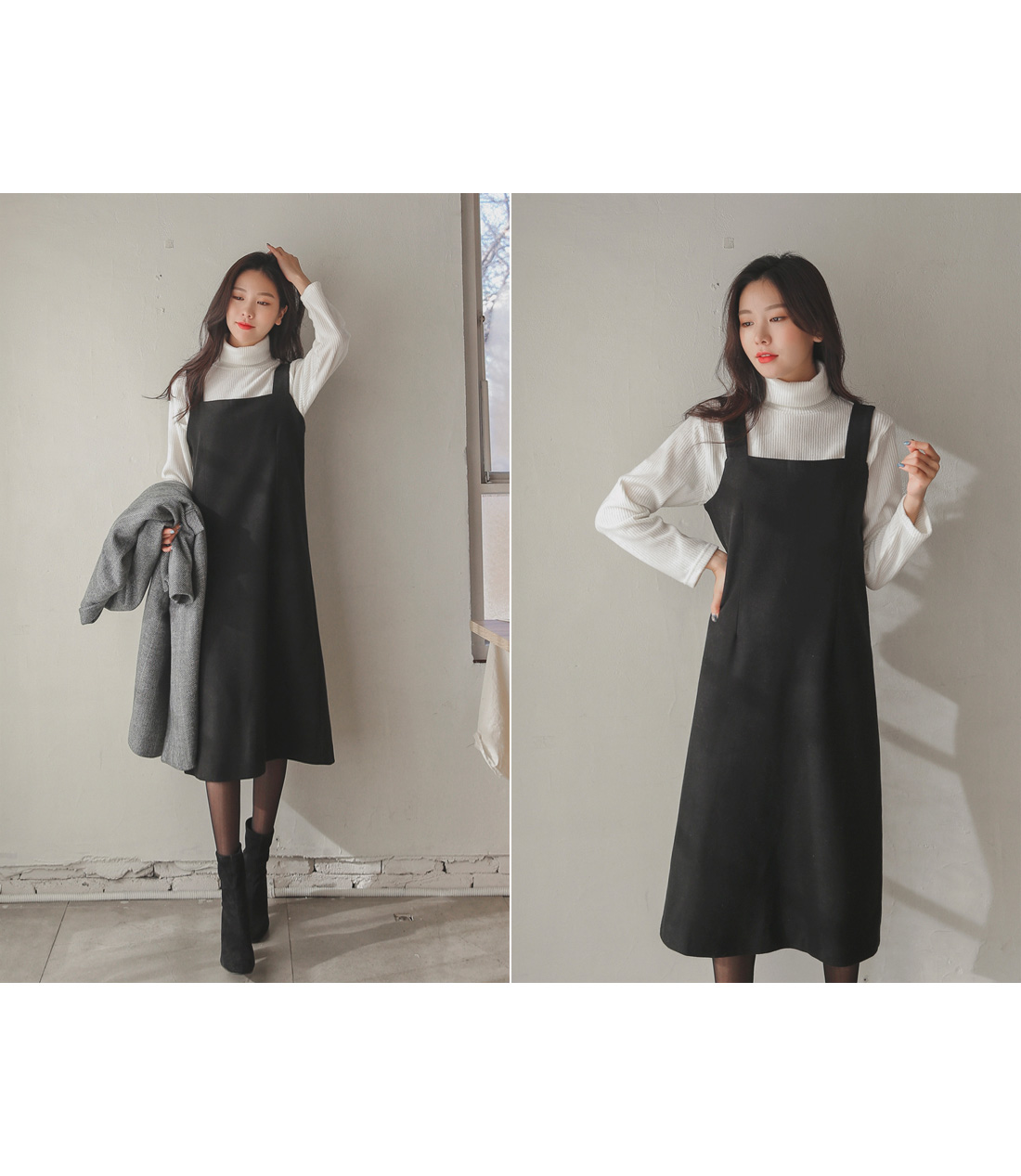 여성스럽고 단정한 무드로 입기 좋은 울서스펜더원피스~!