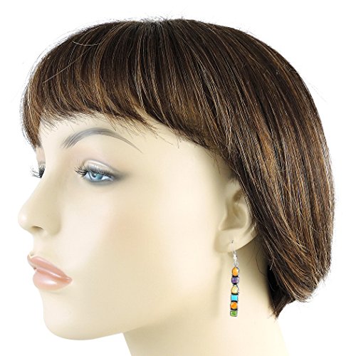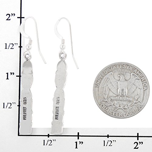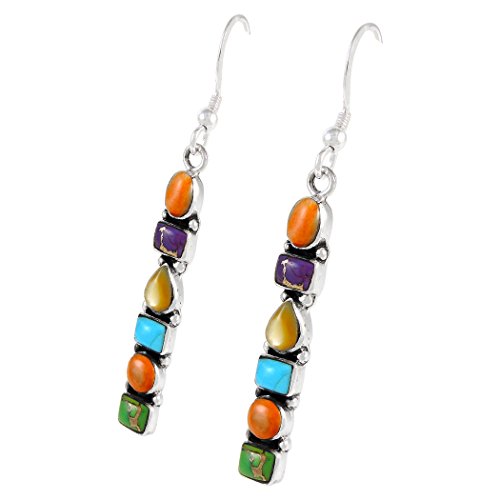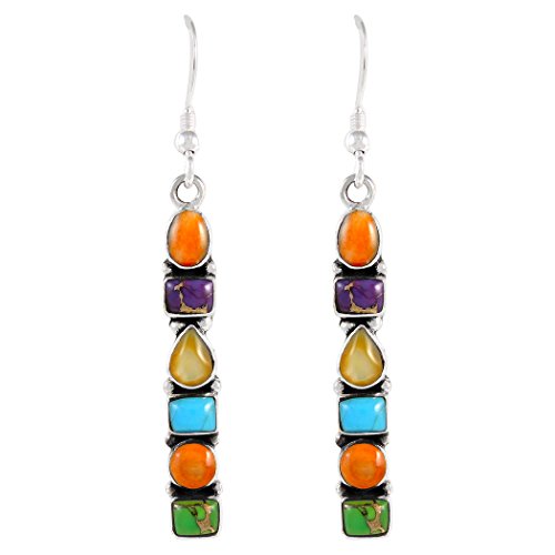 Distinctive earrings in 925 Sterling Silver and genuine gemstones. Amazing craftsmanship. About 1.5" tall (see ruler image).NOTE: Due to the nature of these gemstones, variations in colors/shades and minor imperfections are normal. Our turquoise has been stabilized, treated, and color-enhanced for beauty and durability. Satisfaction always guaranteed.