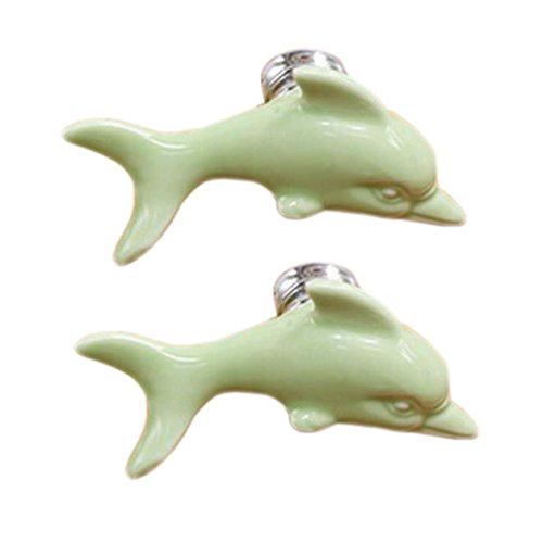 (Kylin Express)/Kids' Furniture Room Decor/Room Decor/DIRECT FROM USA/Set of 4 Cute Ceramic Dolphin Cabinet Knobs Drawer Pull Handles,Green