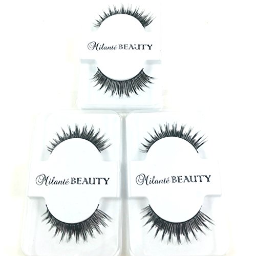 Milanté Beauty 3 Pack Chic False Lashes Black Natural Thick Long Full Reusable Fake Strip Eyelashes