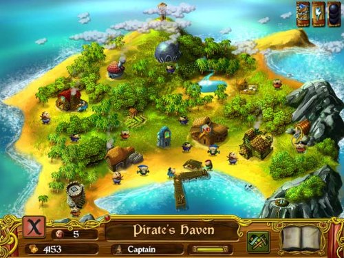 Take a nautical trip to the beautiful Caribbean and find your very own tropical hideaway, me hardy! Sail the high seas with your clan of pirates and bandits to recruit citizens to your village. Earn gold and fame through 100 booty-filled levels, each with its own goals and requirements, to build the greatest pirate village of them all! Experience six different scenarios while searching the ocean blue for your kidnapped love, Ruby Barnacle! Yarrr!!