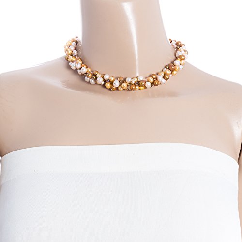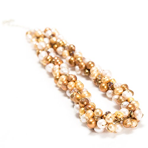 This beautiful clustered freshwater cultured pearl necklace would be a wonderful addition to any wardrobe. The included black velvet pouch also makes it the perfect gift for someone special. Made from genuine freshwater cultured pearl dyed in beautiful gold and pink colors, hand wired in the durable silk thread and lobster claw clasp closure. Comes with 2 inches extension chain and you can adjust the preferred length from 16 inches to 18 inches.