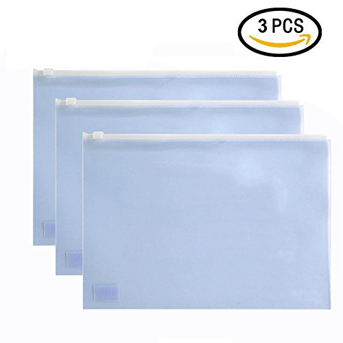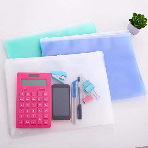 Zippered Envelope,izBuy 3Pcs Ziplock Waterproof PP Bags Seamless Slider Closure Storage Pouch for A4 Paper,Magazine,Memo,Business Receipts,Matt Finish,13x9.8 Inches,Pastel Color,5588 (Blue-3pcs)
