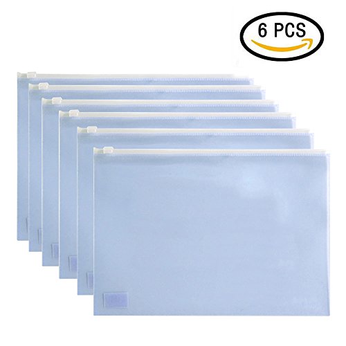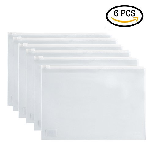 Zippered Envelope,izBuy 6Pcs Ziplock Waterproof PP Bags Seamless Slider Closure Storage Pouch for A4 Paper,Magazine,Memo,Business Receipts,Matt Finish,13x9.8 Inches,Pastel Color,5588 (White-6pcs)