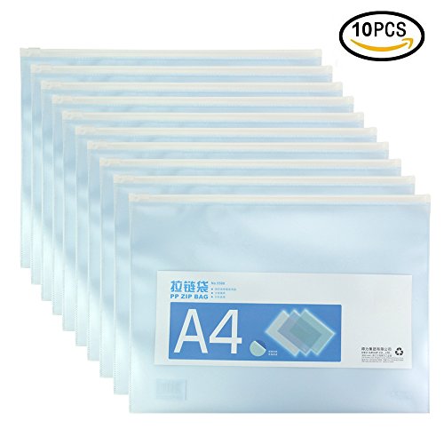 Zippered Envelope,izBuy Ziplock Waterproof PP Bags Perfect Seamless Slider Closure Storage Organizer for A4 Paper,Magazines,Memo,Business Receipts,Frost-treated,13x9.8 Inches,Pastel Color (Blue-10)