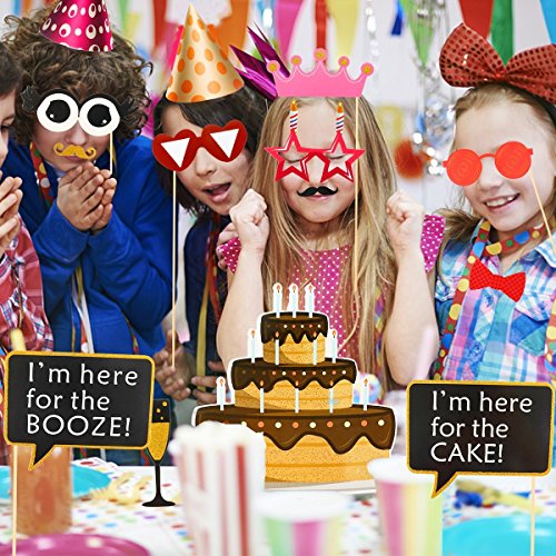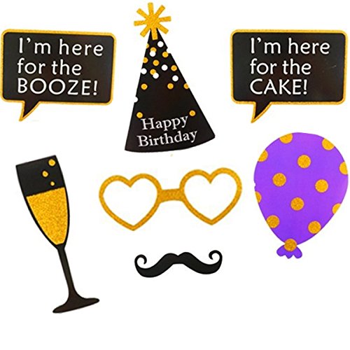 -. Feature : Large Quantity Unique Birthday Stick Photo Props: With a great many of 50 birthday photo booth props that include hats,lips,moustache,birthday cake,wine,tie,ballons themed props that will really make your photos interesting! / You want to have a perfect birthday party? Perfect for birthday party,kid's birthday party,wedding, family reunions,baby shower,tea party,or more birthday theme parties,your kids or friends or love it. / High Quality Props Cards And Sticks: Top quality cardstock and wooden sticks,the big size is perfect for adult and kids,A large number of props available for friends and relatives to share at the same time for the joyful moment,it will be perfectly with the birthday party theme! / EASY TO ASSEMBLE: Simply attach the included wood sticks to each card stock prop image using the provided clear stickers,Then hold the props where you would like to put. / 100% SATISFACTION MONEY BACK GUARANTEE - NO CONDITIONS - Your Satisfaction Is Guaranteed.