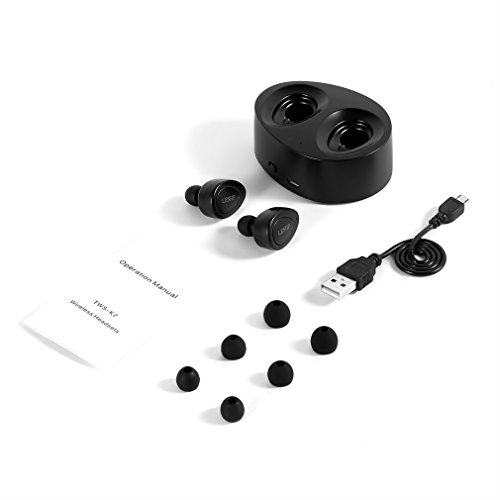 LESHP Wireless Earbuds Mini Twins Stereo Bluetooth V4.1 Sports Headphone Noise Cancelling Stereo Earphone With Mic for iPhone 7/6S/6 Plus Samsung S7 Android Phones for Running Gym Business black