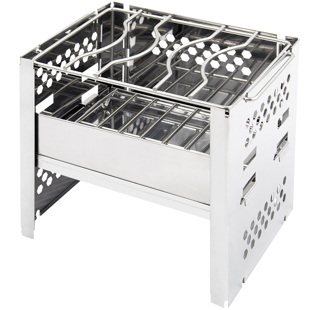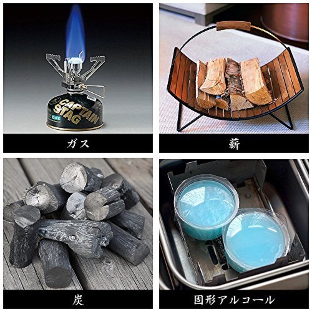 You can use charcoal, firewood and alcohol stoves, solid fuel, candles etc on this stove.