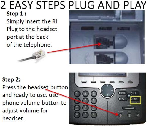 Headset Headphones + Adjustable Volume + Mute Control for Cisco Ip Telephone 7931 7940 7960 7970 7962 7975 7961 7971 7960 M12 M22 and All Series