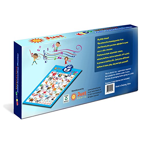 Learning alphabet with Just Smarty Interactive Alphabet Poster has never been easier. Your little one will enjoy exploring all the letters of the alphabet and numbers one through ten. Spurs early development and makes learning exciting and fun!